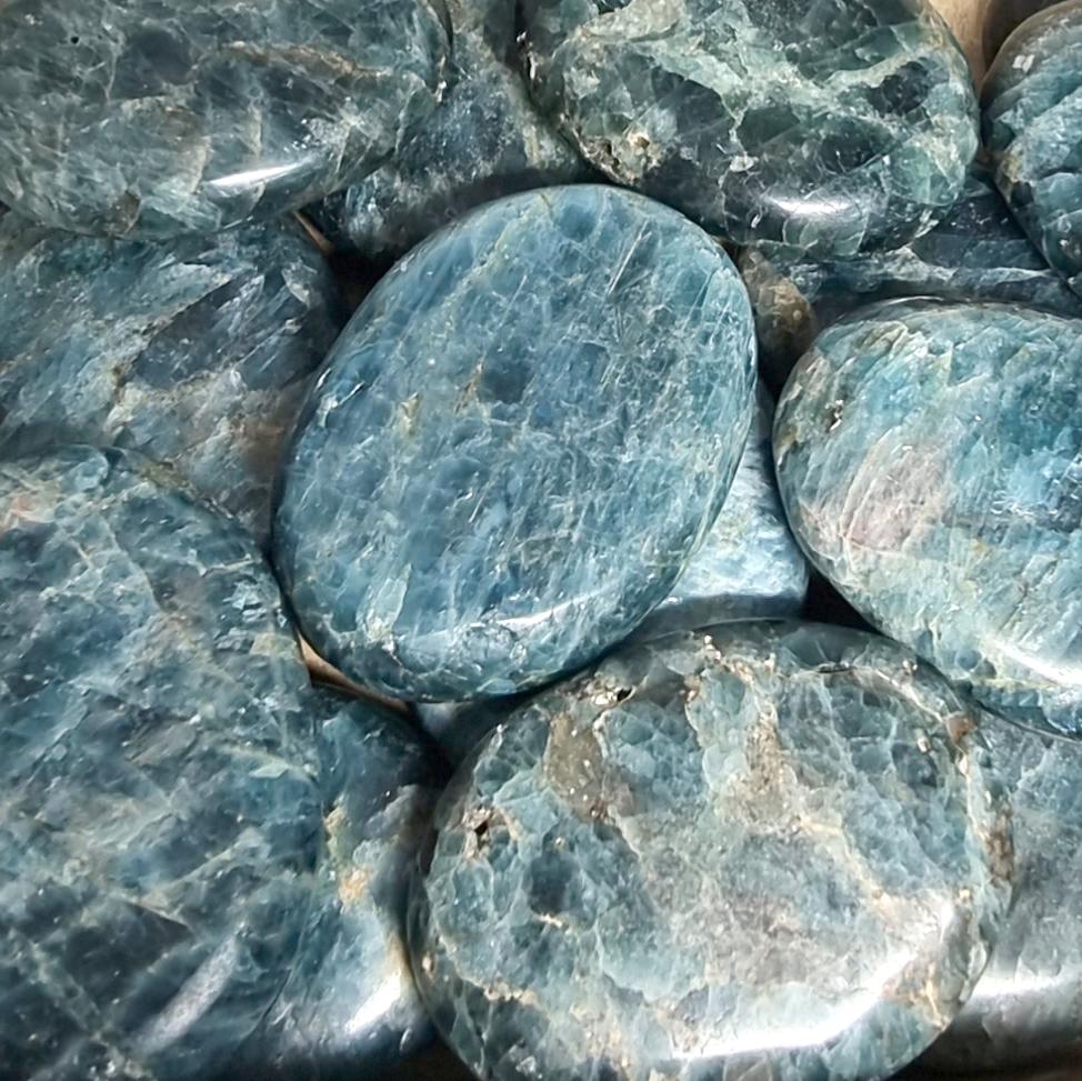 Aide à faire comme l'apatite bleue, circuler les énergies émotionnelles bloquées dans nos nerfs et dans nos os ; pour diriger son action plus vers les os, l'associer avec la fluorine verte ou l'aragonite .