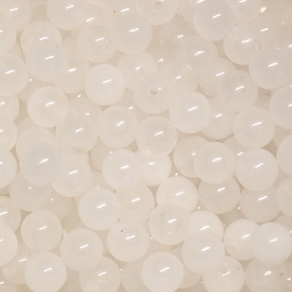 Jadeite blanche (silicate de sodium, aluminium et fer).  C'est une pierre très paisible pour l'esprit, elle tend à arrêter les pensées ou du moins à ralentir son activité incessante ; penser aussi à cyanite bleue qui aide l'esprit à lâcher prise ; vénérée pour son pouvoir spirituelle dans la chine antique, c'est une pierre de pureté, de purification sur tous les plans. Pierre de sagesse, vouée aux belles âmes, elle représente l'intégrité et l'humilité.